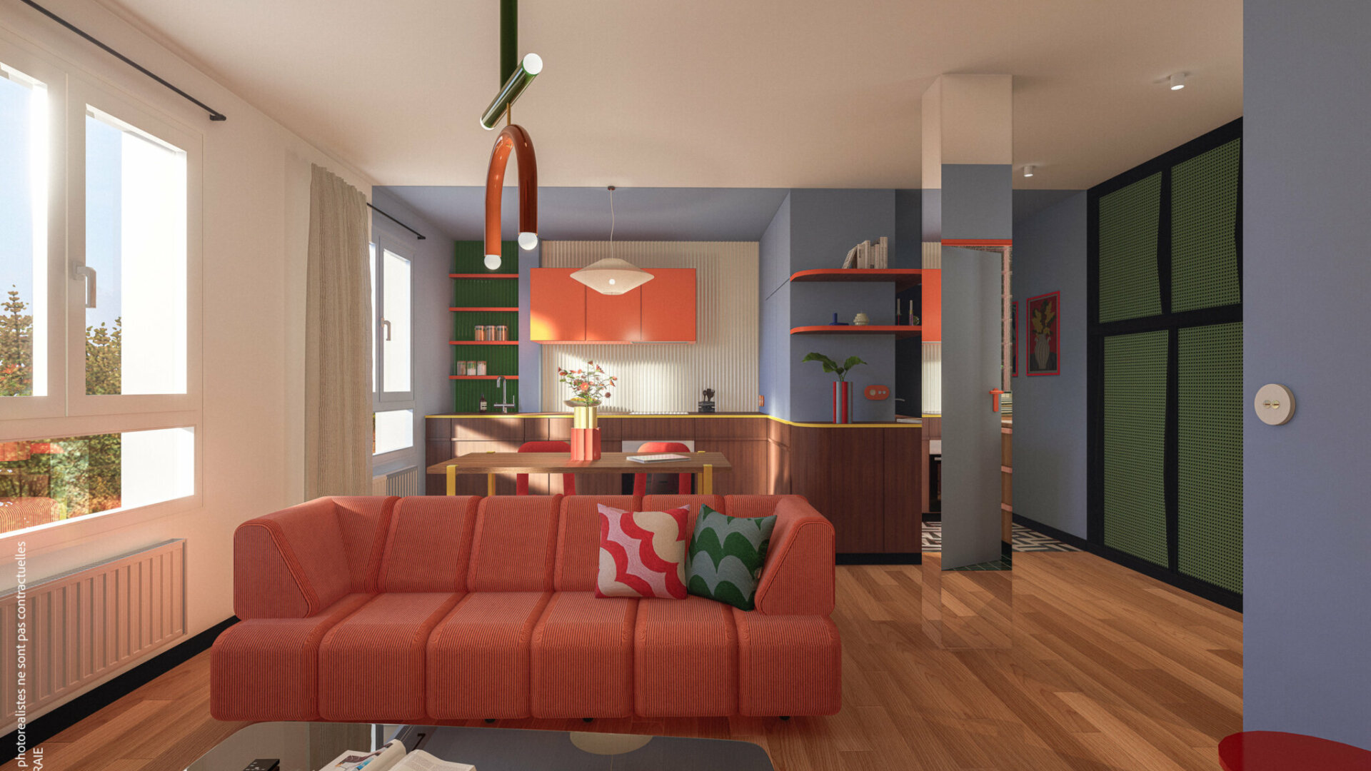 Avec son fil conducteur de couleurs printanières, le projet Laporte expose un lieu de vie riche en contraste et rafraîchissant.