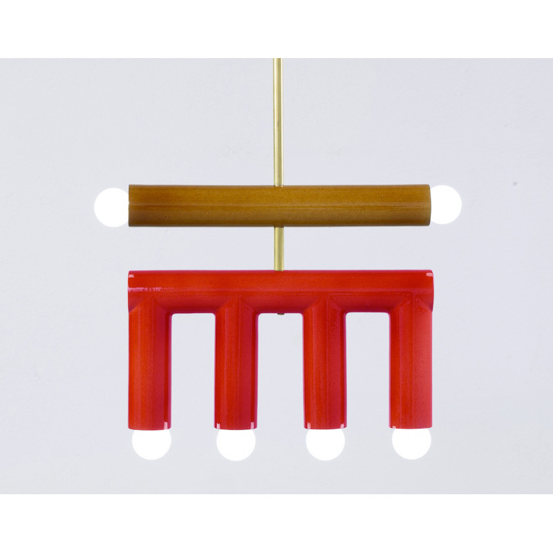 Pour détonner avec la droiture des aménagements, nous avons ici opté pour des formes ludiques et rondes dans l’agencement, avec la suspension TNR de Pani Jurek ou encore le tabouret Zig Zag de chez Pols Potten.