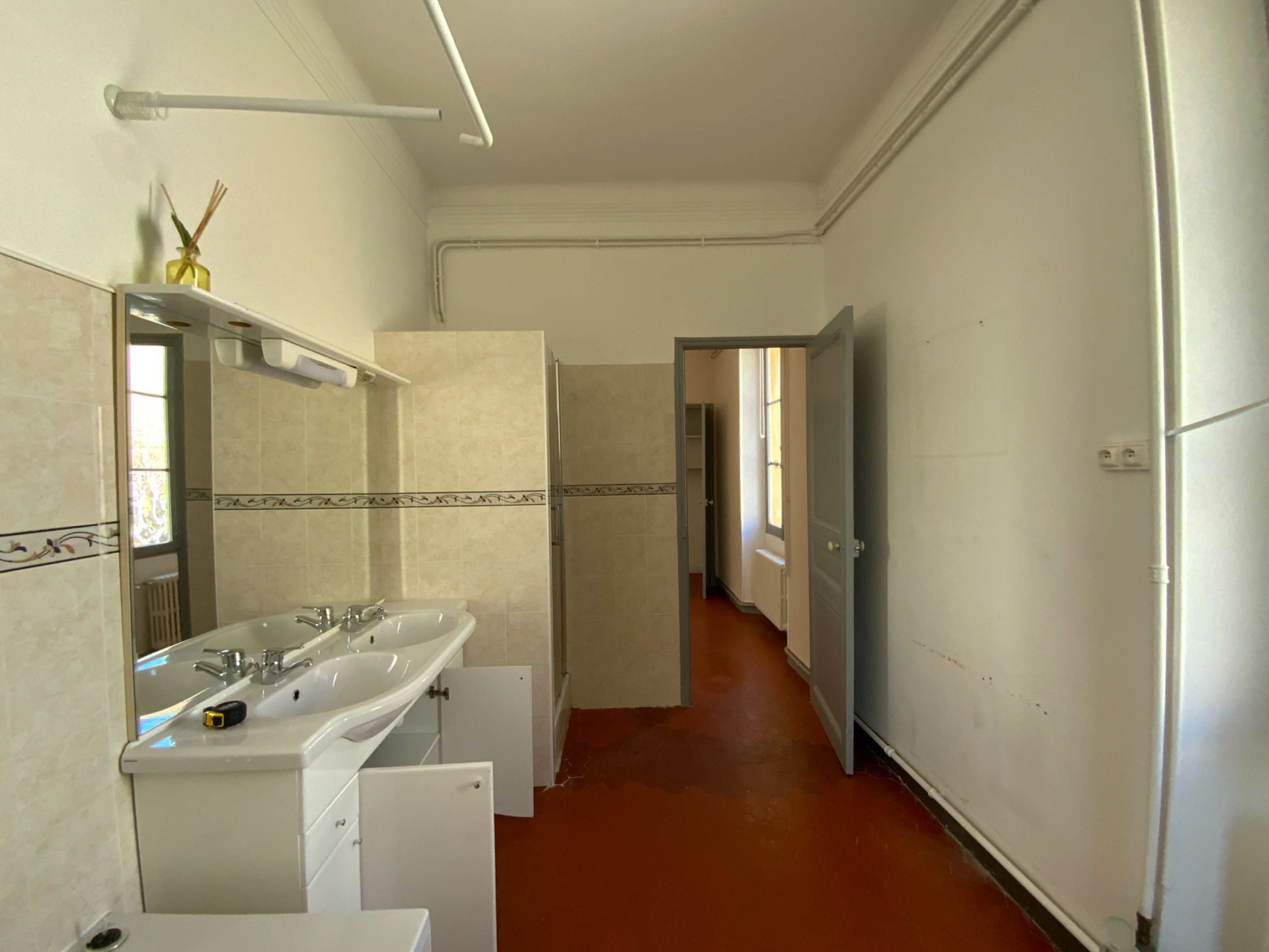 L’appartement, organisé autour d’un escalier central, conserve le charme de ses éléments d’origine, comme les tomettes anciennes au sol et les moulures au plafond. Ces détails architecturaux, riches en caractère, apportent une atmosphère chaleureuse et authentique, contrastée par des touches plus modernes.